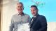 50 Jahre TC Selbitz: Robert Engel (l.) überreichte dem Selbitzer Vorsitzenden Wolfgang Schmidt (r.) zum „50-Jährigen“ die BTV-Ehrenurkunde.